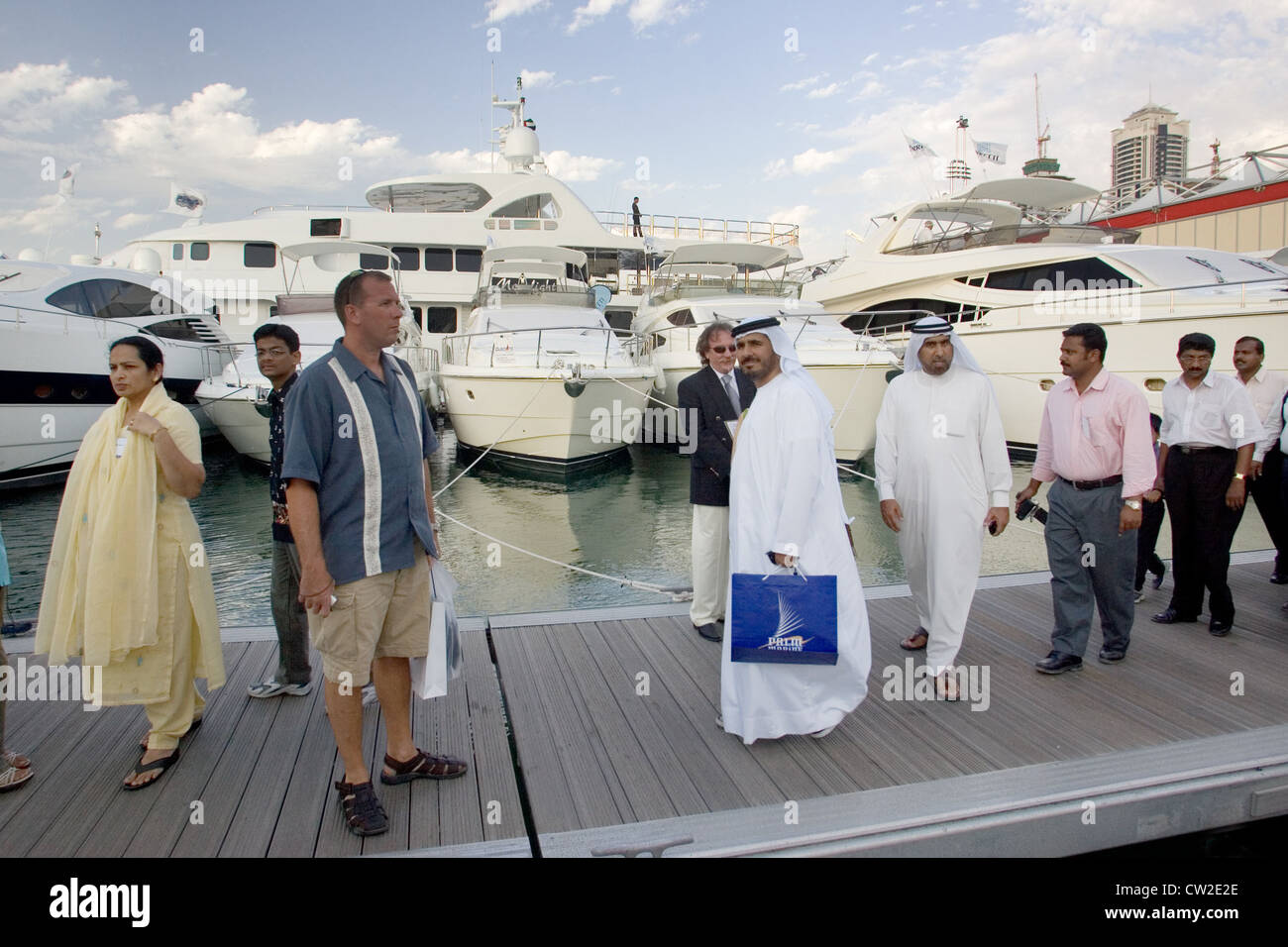 Dubai A Group Of Arab Men In Front Of Luxury Yachts Marina Stock