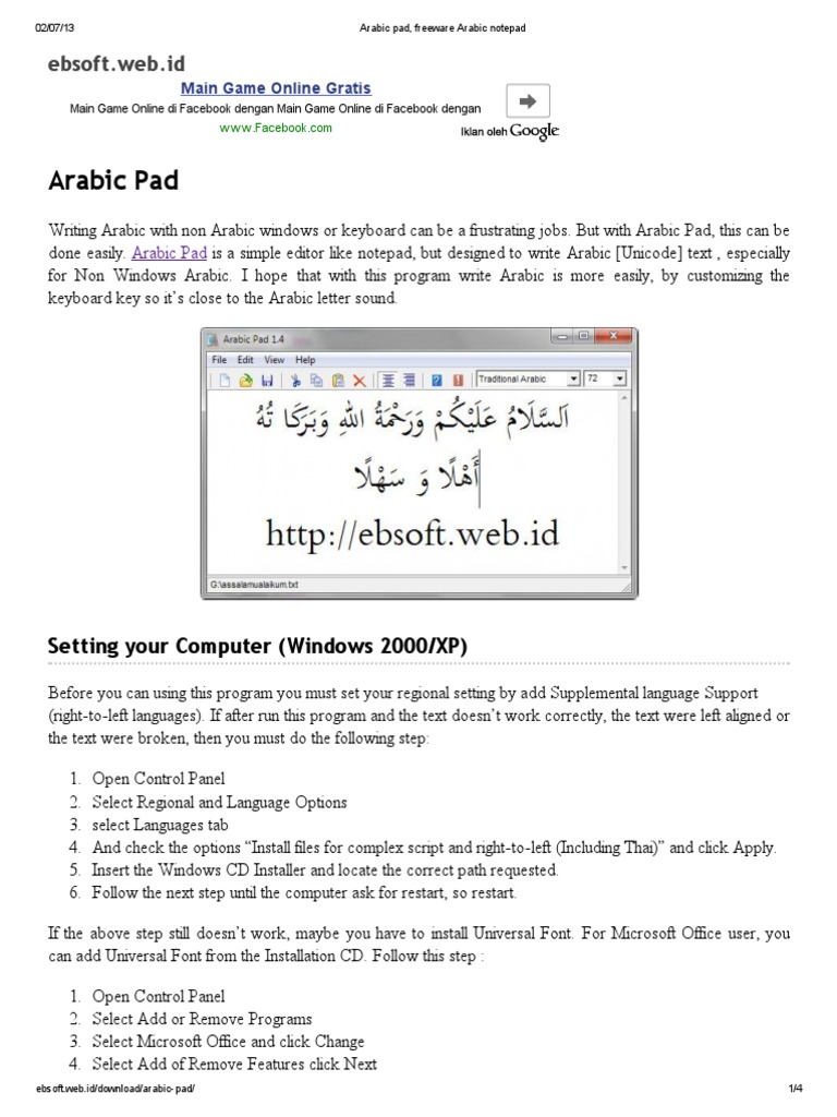 Download arabic pad 1 4 for windows. The actual developer of the free software is ebta setiawan. Arabic pad is a simple editor like notepad but designed to write arabic unicode text especially for non windows arabic. Arabic pad was reviewed by sorin cirneala.