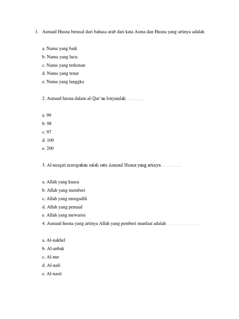 Asmaul Husna Berasal Dari Bahasa Arab Dari Kata Asma Dan