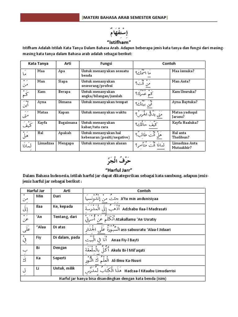 Soal Ulangan Bahasa Arab Kelas Xi Sma