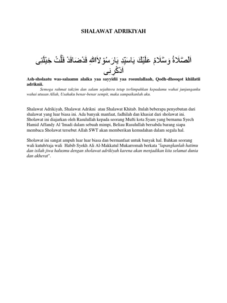 Fadhilah Manfaat Dan Khasiat Shalawat Adrikiyah Adrikni