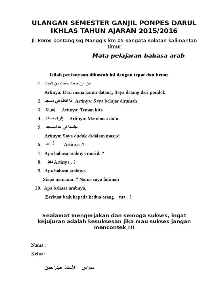 1 Nama Saya Fatimah 2 Dimana Rumahmu 3 Siapa Nama Mu Pr