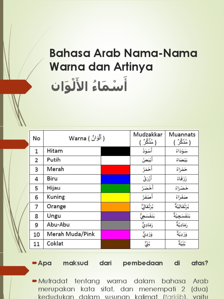 Bahasa Arab Nama Nama Warna Dan Artinya