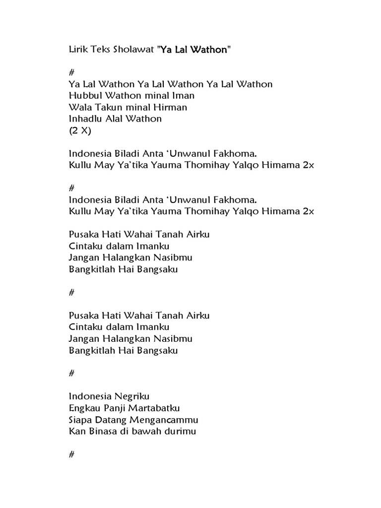 Lirik Teks Sholawat Ya Lal Wathon Docx