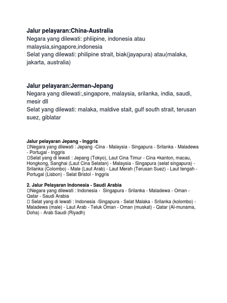 Jalur Pelayaran Jepang Inggris Indonesia China Saudi Dsb