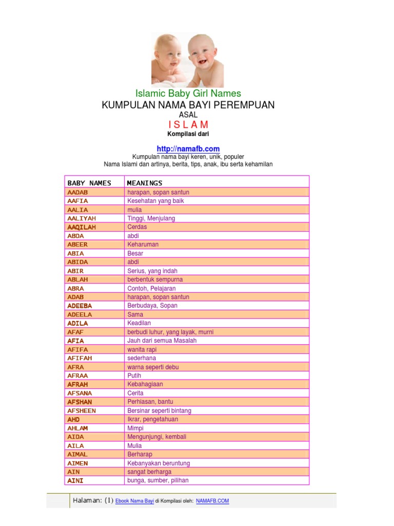 Kumpulan Nama Bayi Perempuan Islami Dan Artinya Pdf
