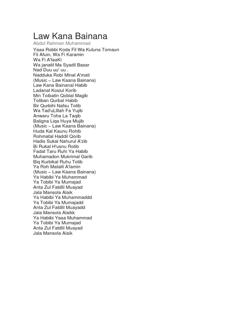 Lirik Law Kana Bainanal Habib Teks Arab Latin Dan Artinya