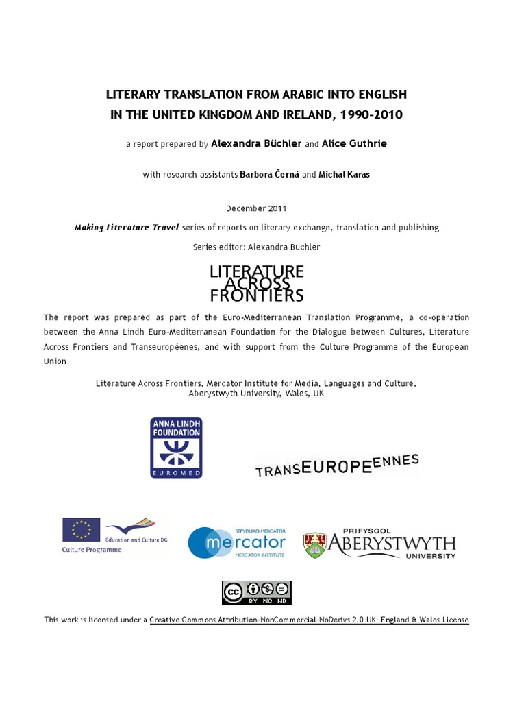 Literary Translation From Arabic Into English In The United Kingdom And Ireland 1990 2010 Final Pdf Translations Publishing