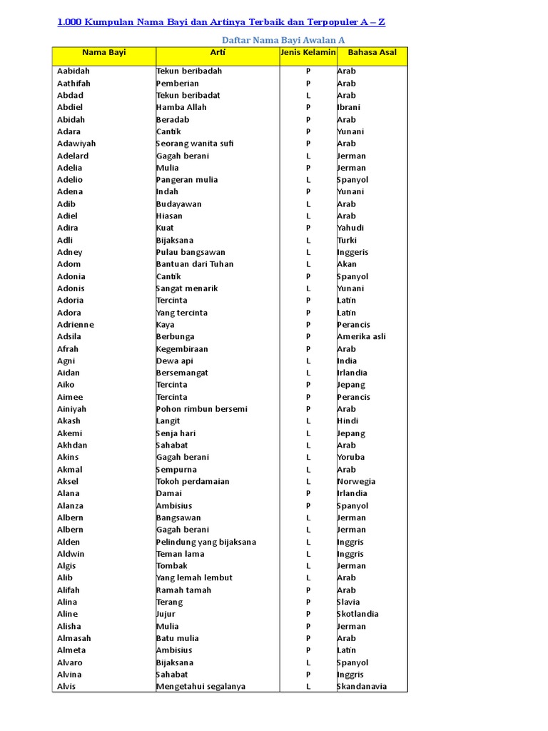 Nama Bayi Arti Jenis Kelamin Bahasa Asal