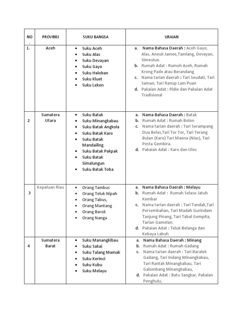 Suku Bangsa Nama Bahasa Daerah Nama Rumah Adat Nama Tarian Daerah