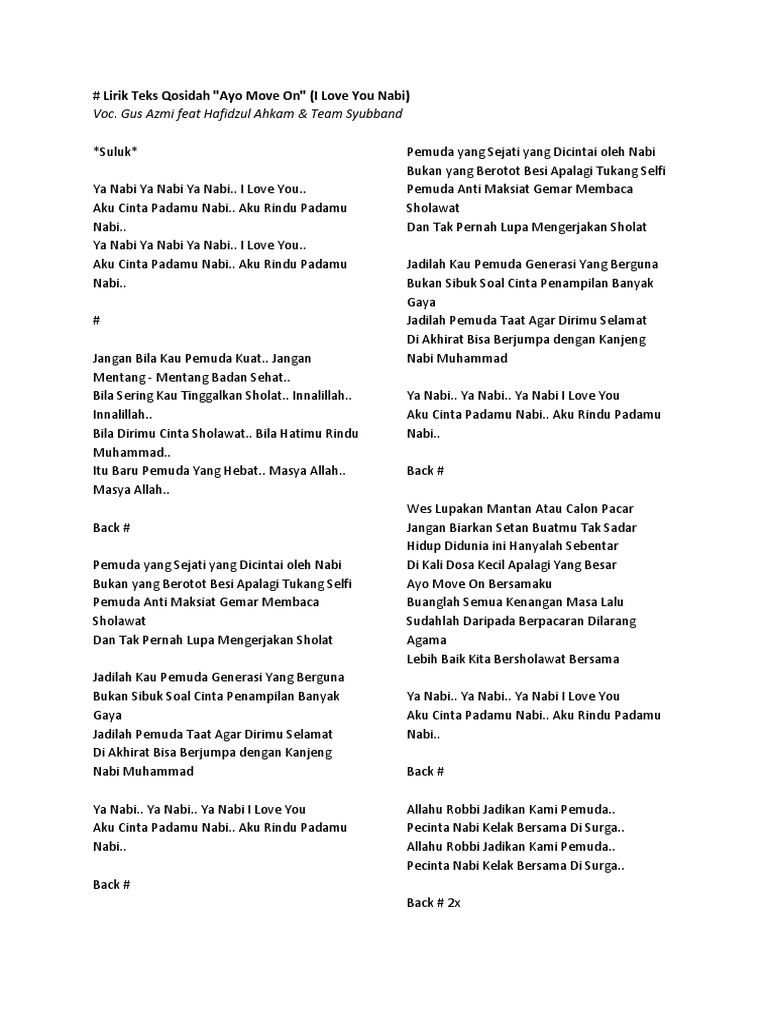 Lirik Sholawat Qoshidah Jaran Goyang Ayo Move On Syubbanul