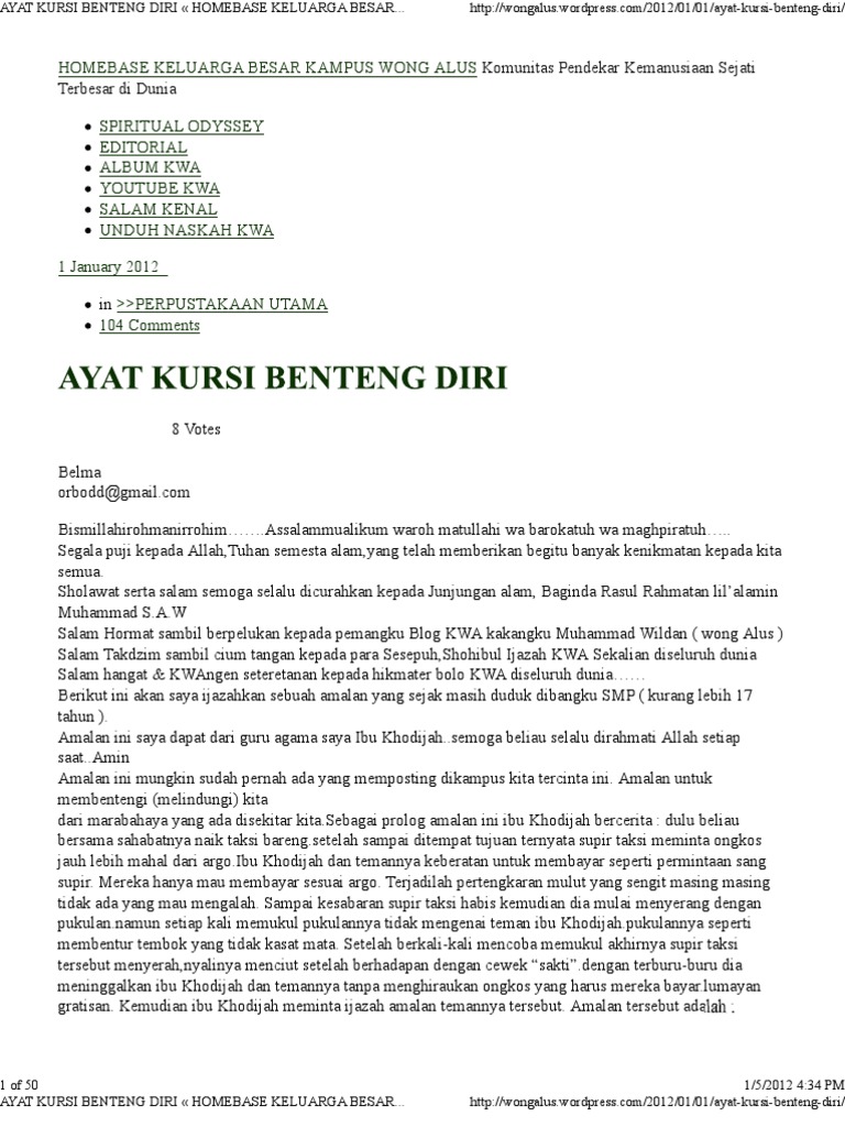 Ayat Kursi Benteng Diri Homebase Keluarga Besar Kampus Wong Alus