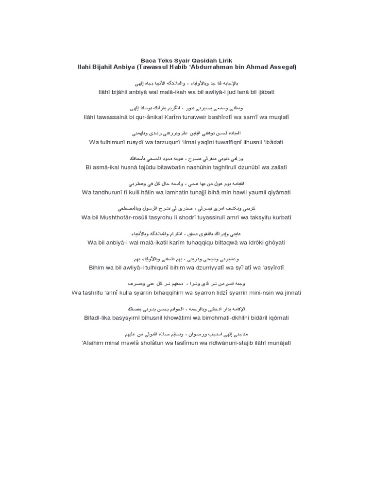 Ilahi Bijahil Anbiya Wal Malaikah Text Lirik Tawasul Syaidul