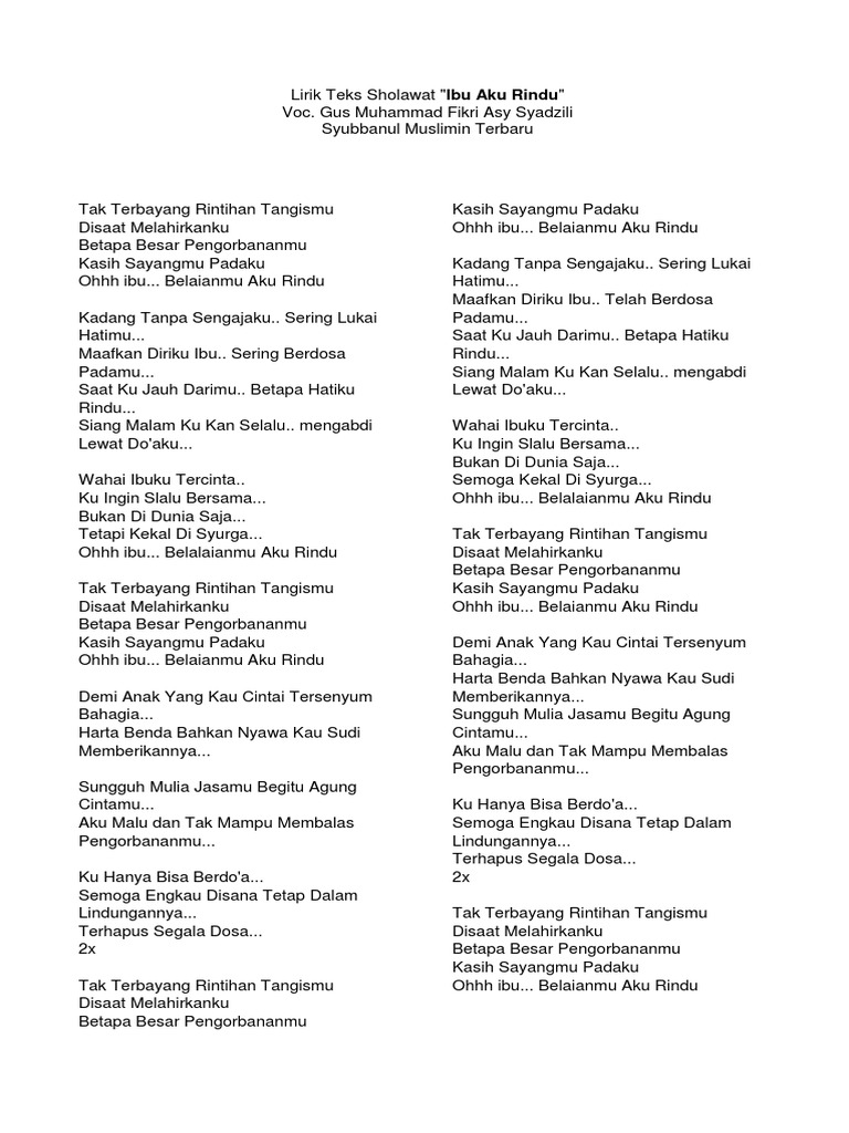 Lirik Sholawat Gus Azmi Lirik Lagu Rindu Ibu Wattpad